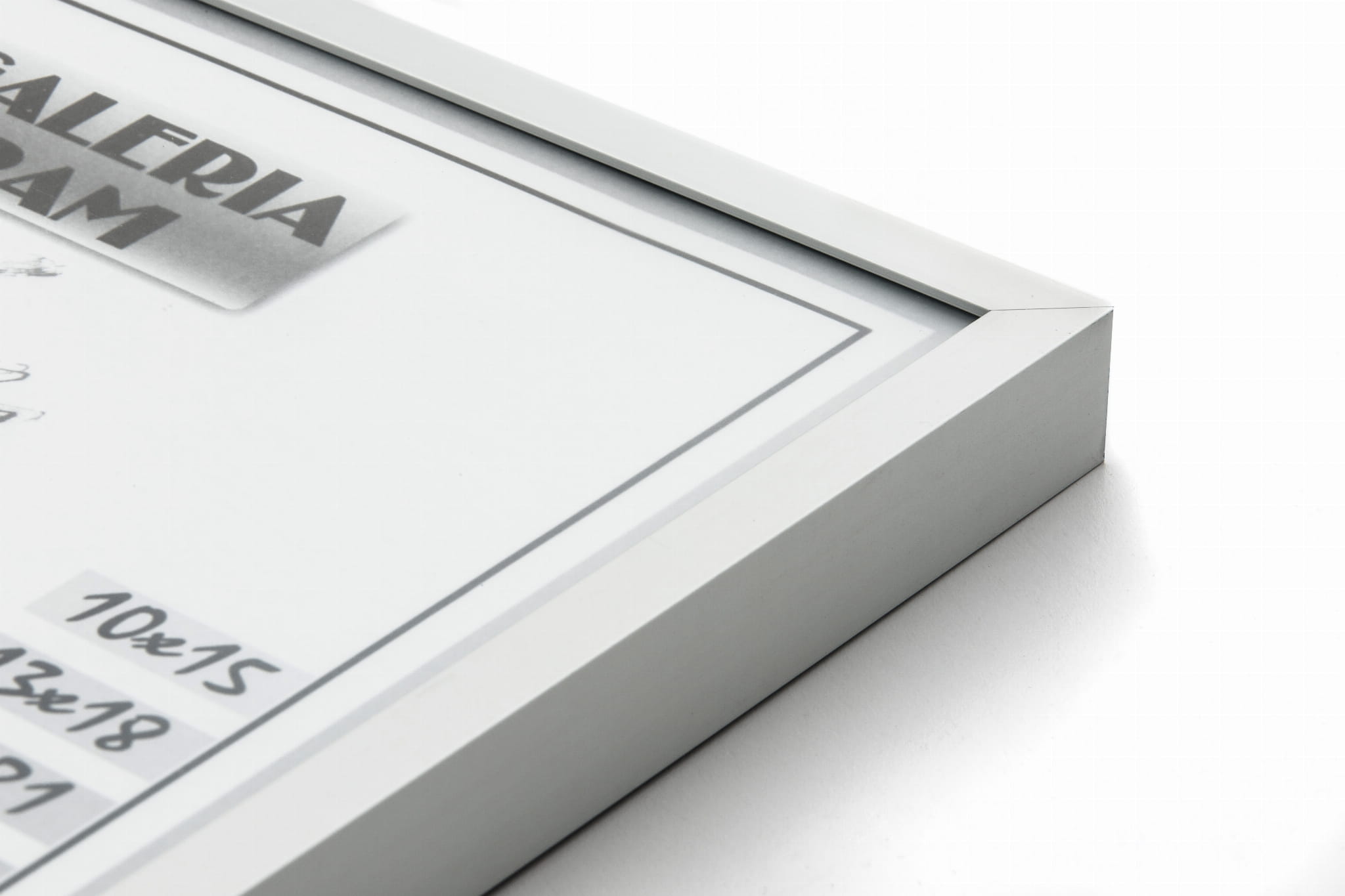 Prezentujemy Państwu ramę aluminiową o wymiarach 58x85 cm. Do wyboru jest front: z plexi lub szklany. Oba dostępne są również w opcji antyrefleksyjnej (odbijającej światło oraz zwiększającej komfort oglądania pracy). Rama wyposażona jest w mocny zaczep do powieszenia na ścianie.