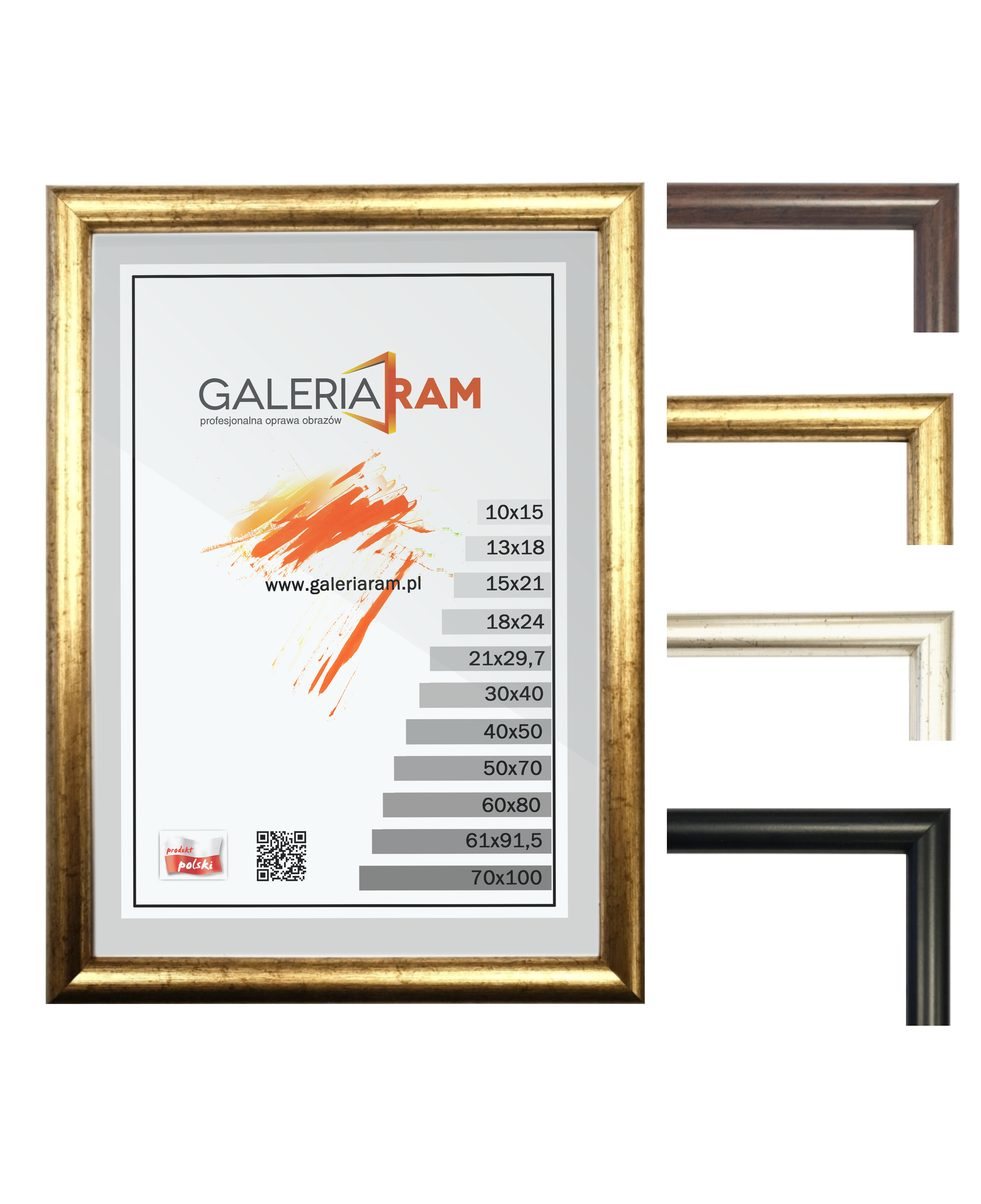 Prezentujemy Państwu ramkę drewnianą o profilu Ami G i wymiarach 60x70 - 4 KOLORY - srebrna, złota, czarna, brązowa. Uzupełniona jest ona o front szklany lub z plexi (do wyboru zwykłe lub antyrefleksyjne). Drewniana rama dostępna jest w wersji do powieszenia.