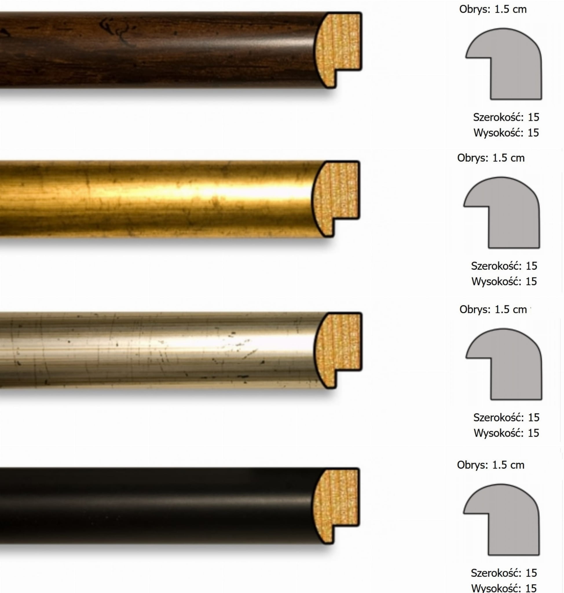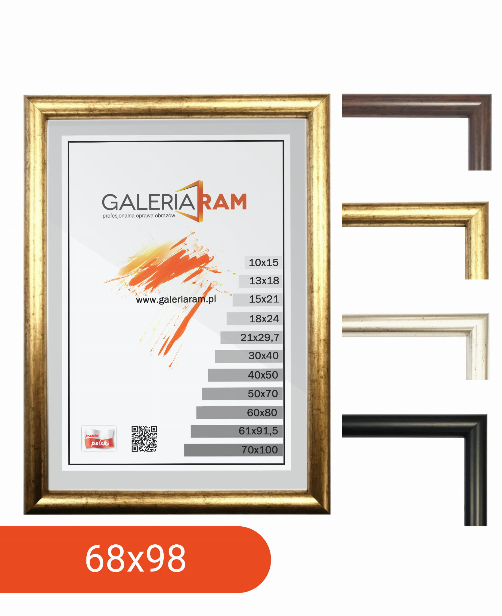 Prezentujemy Państwu ramkę drewnianą o profilu Ami G i wymiarach 68x98 - 4 KOLORY - srebrna, złota, czarna, brązowa. Uzupełniona jest ona o front szklany lub z plexi (do wyboru zwykłe lub antyrefleksyjne). Drewniana rama dostępna jest w wersji do powieszenia.