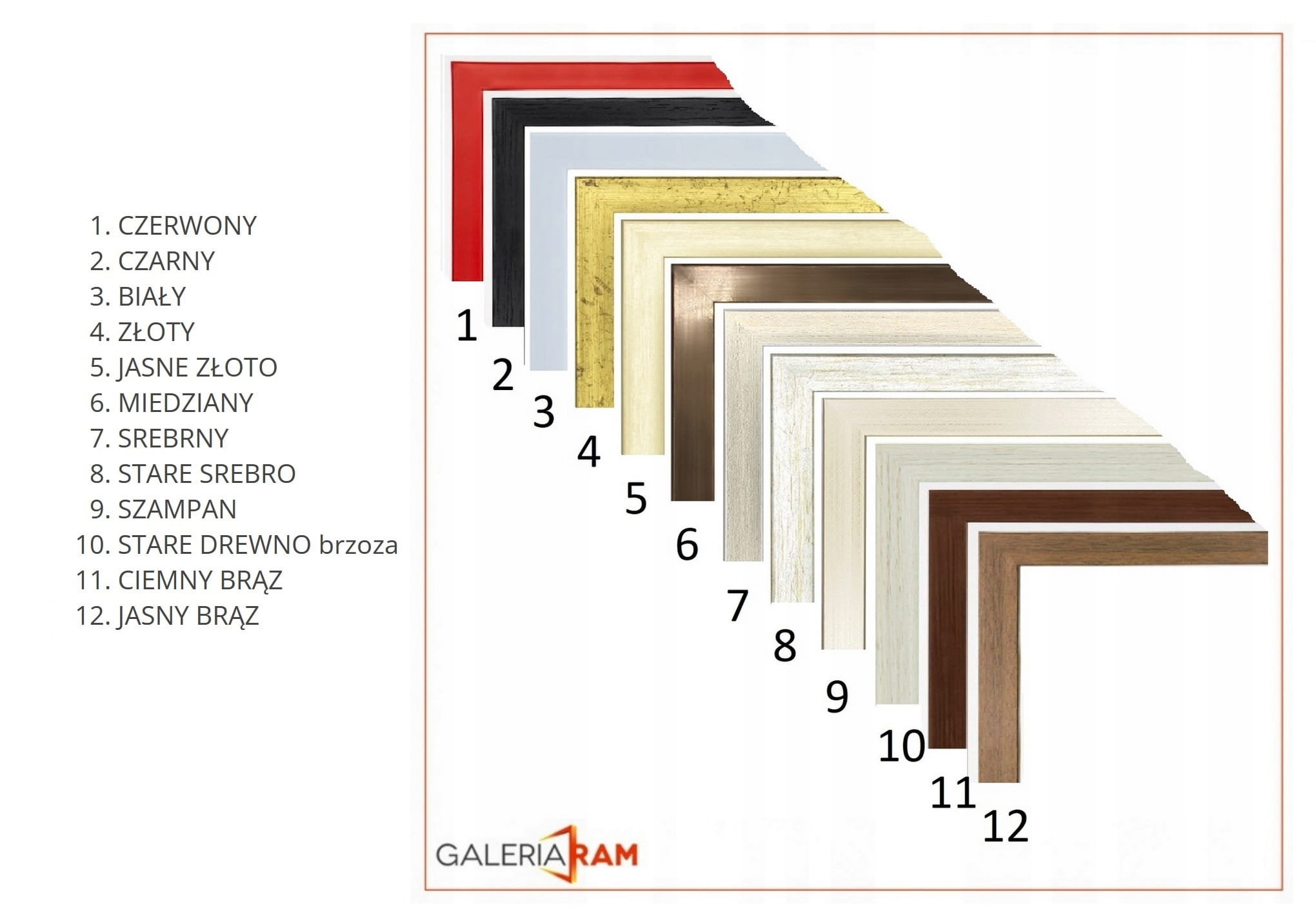 Ramki wik sprzedajemy w wielu modnych kolorach: czerwonym, brzozowym, miedzianym, białym, złotym, srebrnym, czarnym, starym srebrnym, średniobrązowym, oraz w barwach starego drewna.